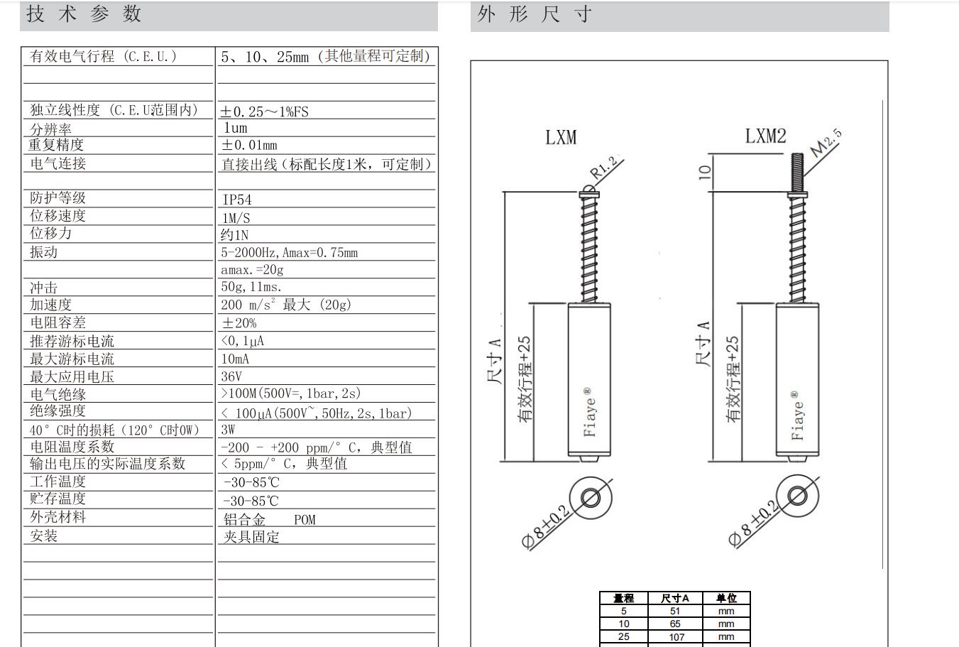 LXM系列超微型电阻式位移传感器电子尺
